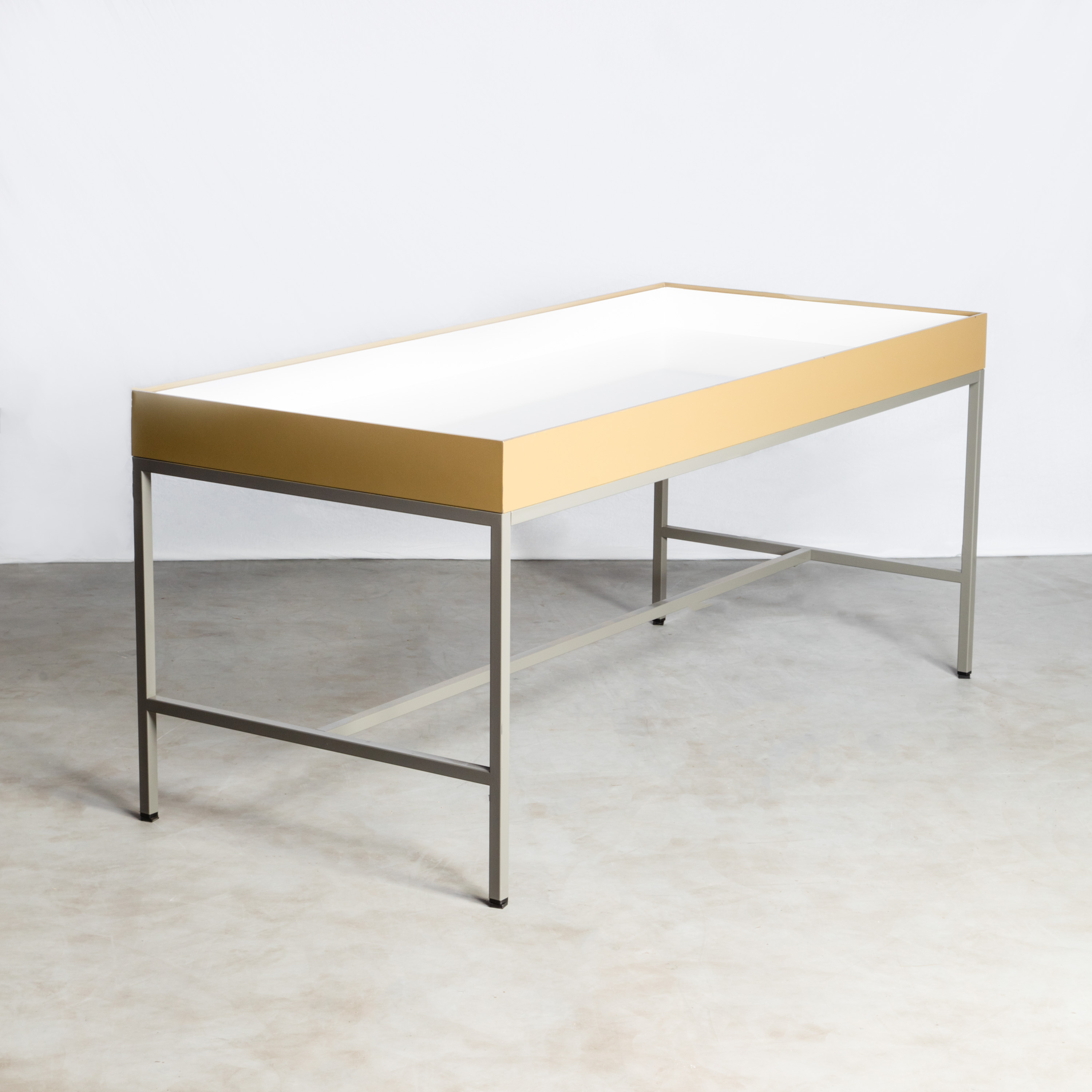 tafel 74,5 H + 44.1 glazen kap 30H in krat (123,5Hx211x82,5cm)