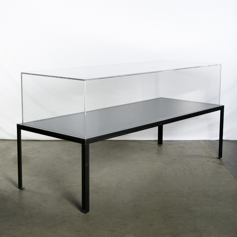 stalen frame 80H + bak 10H, 5mm glazen dekplaat gehard facet geslepen interieur 7,5 hoog
